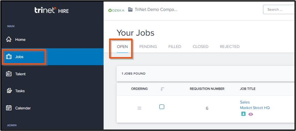Navigate to the Jobs tab to see a list of all open jobs.