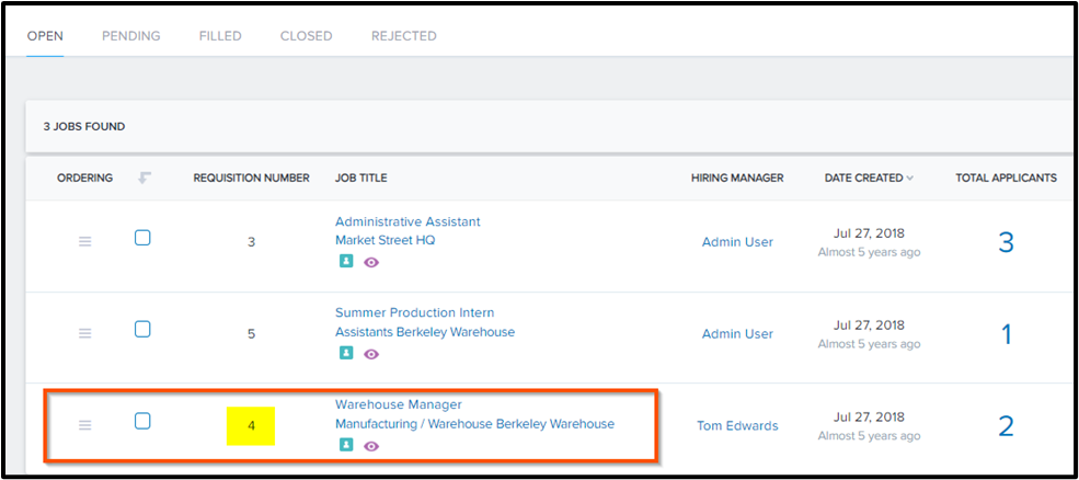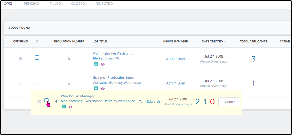 Or from the Admin/Manager View > Click on "Hiring">Then click on "Applicant Tracking".