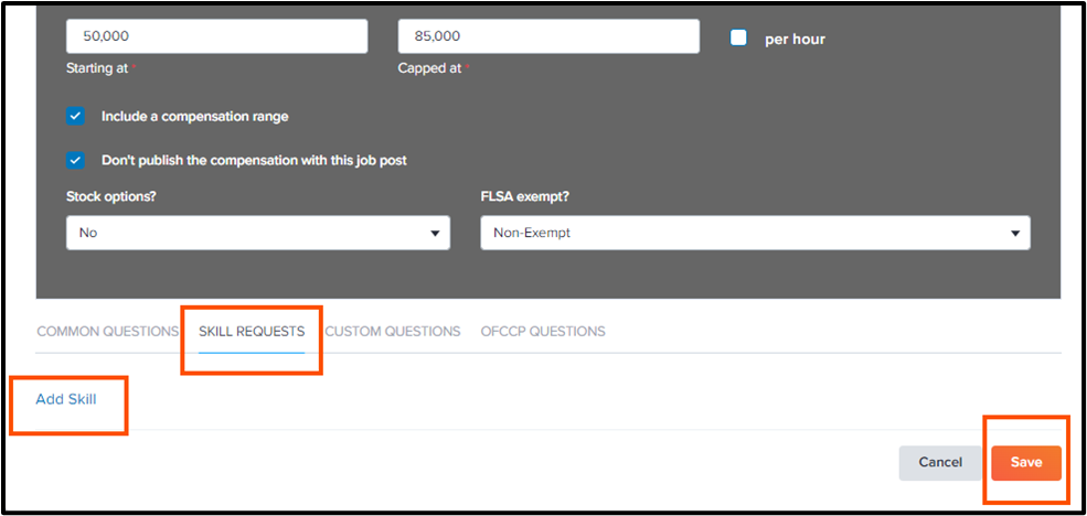 Enter in the Skill you desire the candidate to have and select what skill level you're expecting.