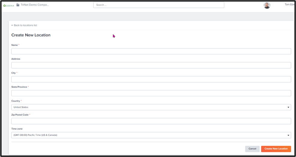 After clicking this button, you will be taken to a Create New Location page that will provide you with a template to enter all necessary information pertaining to your location.