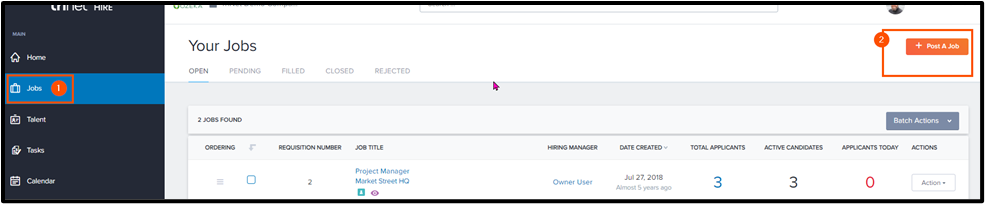 Navigate to the Jobs tab>click Post a Job