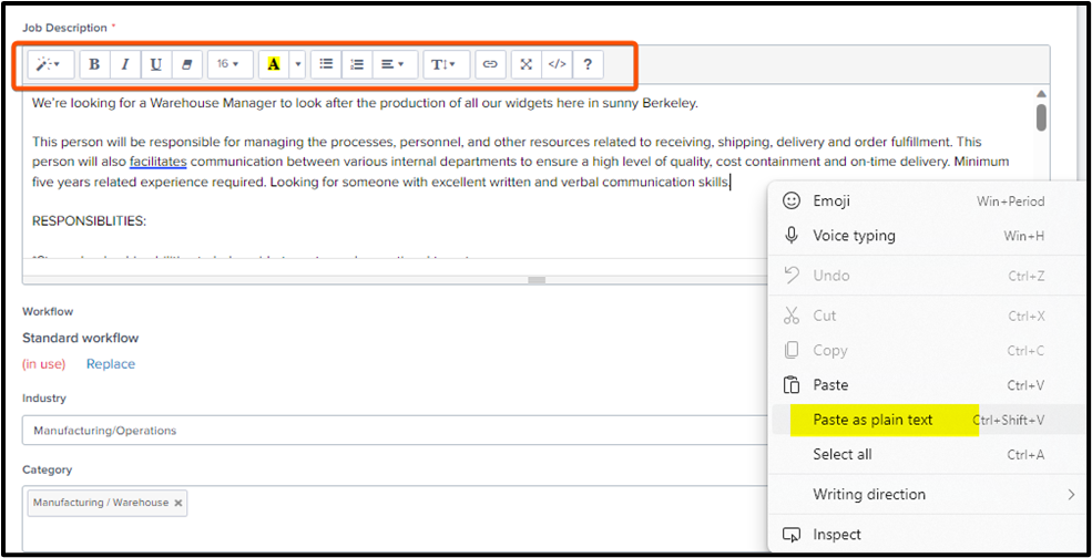 The formatting within Summernote/TriNet Applicant Tracking will not always look identical when it gets published to one of the job boards.